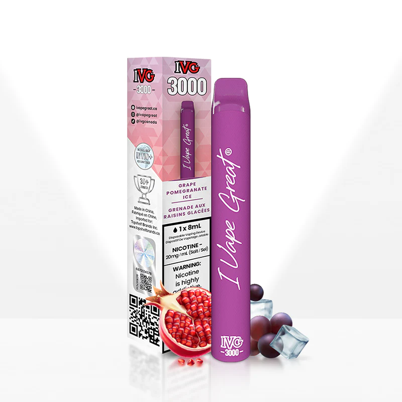 Experience the refreshing fusion of grape and pomegranate with IVG's 3000 - Grape Pomegranate Ice, now available at Dank Korner. This premium disposable e-cigarette features cutting-edge hybrid airflow coil technology, ensuring a smooth and flavorful vaping experience with every puff. With a generous 8ml capacity and a powerful 1250mAh battery, enjoy up to 3000 puffs of high-quality, lab-tested vapor. Perfect for both recreational and medical marijuana users, this product offers discreet shipping and fast delivery. Buy weed online today and elevate your vaping game with IVG at Dank Korner!