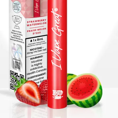 Indulge in the refreshing taste of IVG's Strawberry Watermelon, available at Dank Korner. This premium e-cigarette combines the sweetness of ripe strawberries with the juiciness of watermelon, delivering a delightful vaping experience. Designed for convenience, the IVG 3000 features cutting-edge hybrid airflow coil technology, ensuring exceptional flavor and longevity with each puff. With 3000 puffs and an impressive 8ml e-liquid tank, enjoy a long-lasting vaping journey. Shop now at our online...